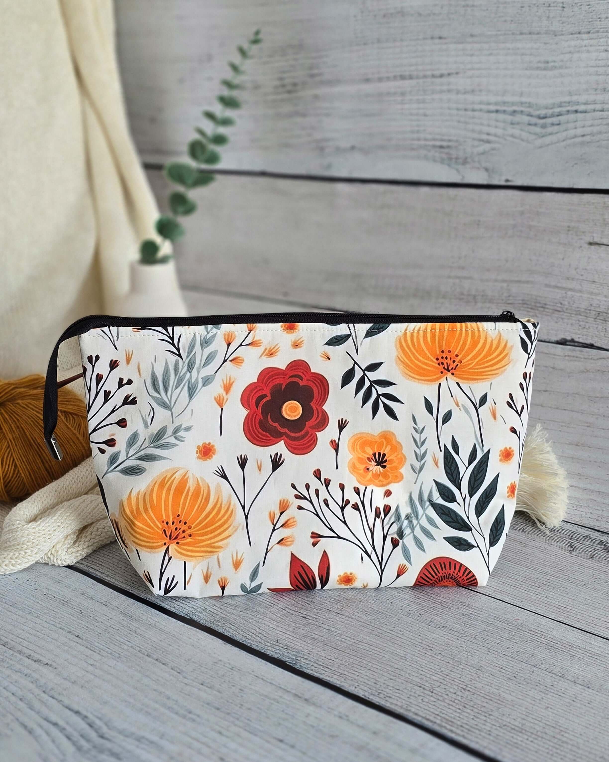 • Handgenähte Projekttasche mit Blumenmuster und Kordelzug