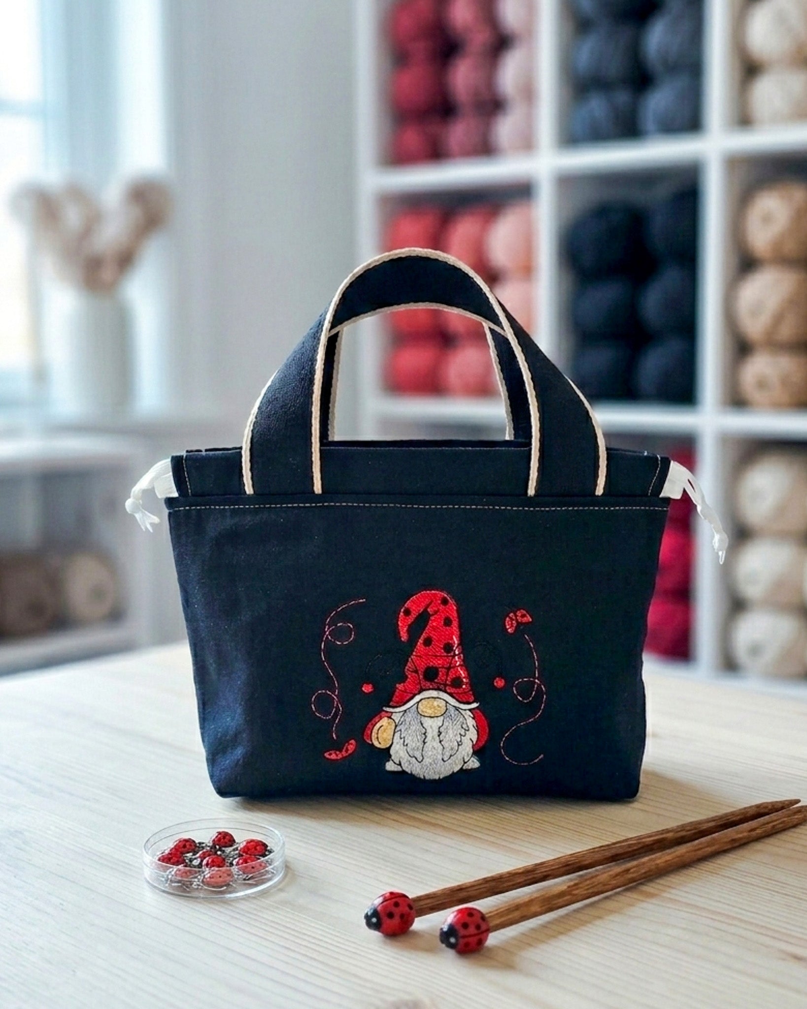 Habe schon lange mit einer Projekttasche mit Wichteldesign liebäugelt. Diese ist einfach perfekt.