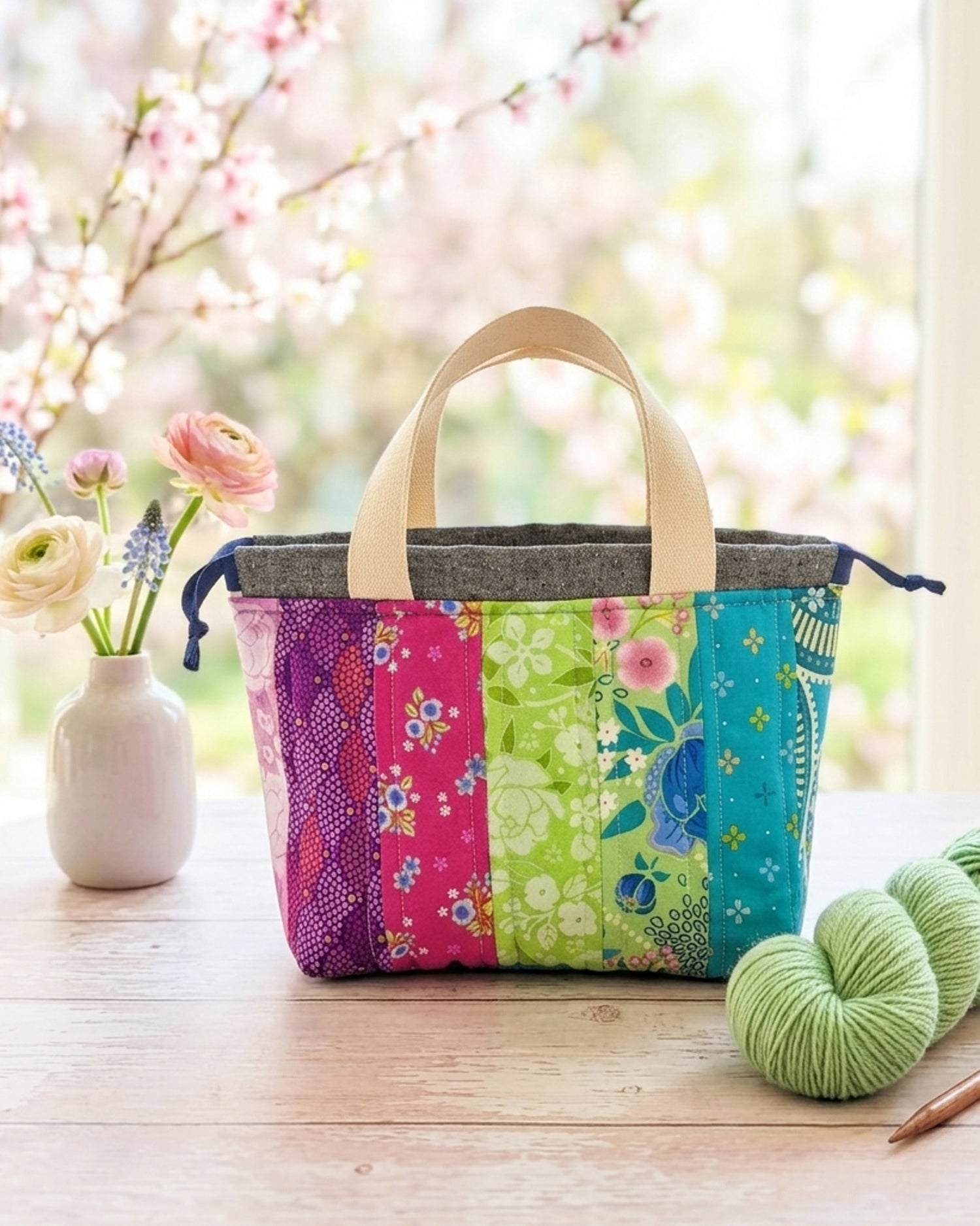 Perfekt für unterwegs und kleine Projekte wie Socken, Mützen oder Babykleidung. Hier passen 1–2 Stränge Wolle (50–200 g) plus Nadeln und Kleinkram bequem hinein. -